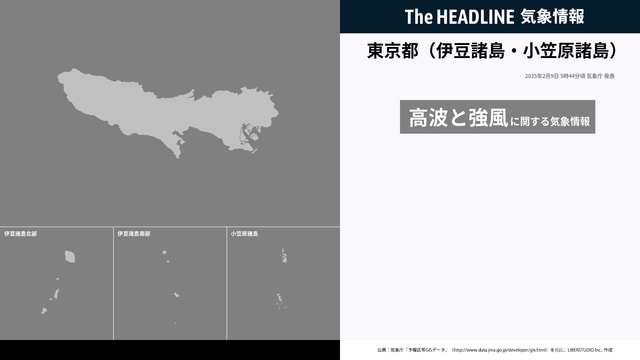 2月9日5時44分、気象庁は、東京都(伊豆諸島・小笠原諸島)に発表されている警報・注意報の経過、予測、防災上の留意点などを解説するために発表していた気象情報を更新した。