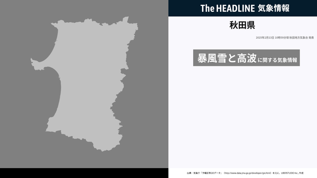 2月13日10時59分、秋田地方気象台は、秋田県に発表されている警報・注意報の経過、予測、防災上の留意点などを解説するために発表していた気象情報を更新した。
