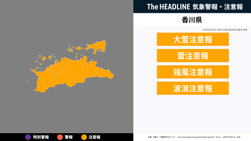 2月24日16時25分、高松地方気象台は、警報・注意報に先立ち注意・警戒を呼びかけるため香川県に発表していた気象情報を更新した。