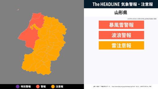 2月27日10時43分、山形地方気象台は、山形県に発表されている警報・注意報の経過、予測、防災上の留意点などを解説するためになだれに関する気象情報を発表した。