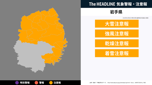 2月27日10時46分、盛岡地方気象台は、岩手県に発表されている警報・注意報の経過、予測、防災上の留意点などを解説するためになだれに関する気象情報を発表した。