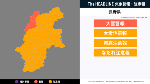 このため、北部の山沿いでは7日昼前にかけて強い雪の降る所があるでしょう。長野県内へ流れ込む雪雲が予想以上に発達した場合には、警報級の大雪となる地域が広がる可能性があります。