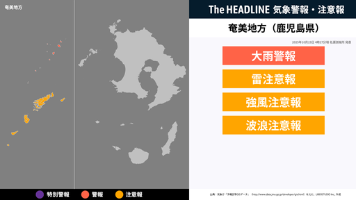 奄美地方(鹿児島県)、大雨と突風に関する気象情報が更新
