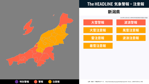 4月6日16時30分、新潟地方気象台は、新潟県に発表されている警報・注意報の経過、予測、防災上の留意点などを解説するために発表していた気象情報を更新した。