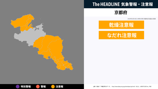 4月14日11時8分、京都地方気象台は、京都府に発表されている警報・注意報の経過、予測、防災上の留意点などを解説するために発表していた気象情報を更新した。