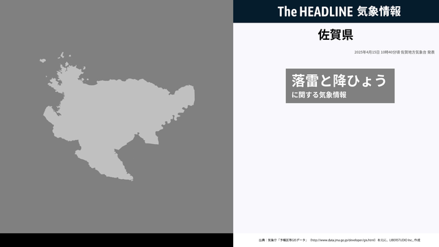 4月15日10時40分、佐賀地方気象台は、佐賀県に発表されている警報・注意報の経過、予測、防災上の留意点などを解説するために発表していた気象情報を更新した。