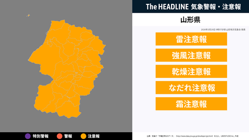 4月26日5時40分、山形地方気象台は、山形県に発表されている警報・注意報の経過、予測、防災上の留意点などを解説するために発表していた気象情報を更新した。