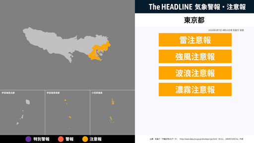 5月2日21時21分、気象庁は、東京都に発表されている警報・注意報の経過、予測、防災上の留意点などを解説するために発表していた気象情報を更新した。