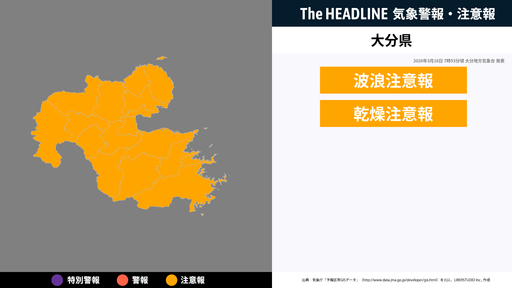 対象の市区町村と警報・注意報
