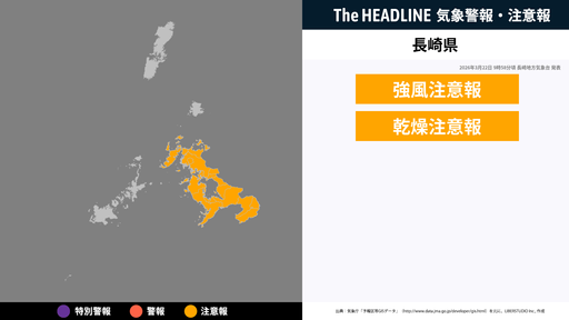 5月6日16時3分、長崎地方気象台は、長崎県に発表されている警報・注意報の経過、予測、防災上の留意点などを解説するために発表していた気象情報を更新した。