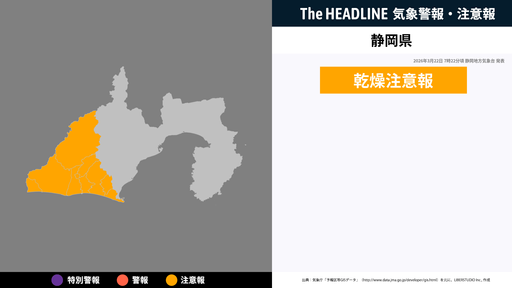 5月17日16時47分、静岡地方気象台は、静岡県に発表されている警報・注意報の経過、予測、防災上の留意点などを解説するために発表していた気象情報を更新した。