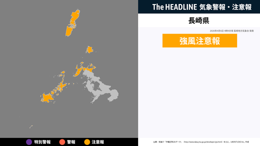 6月10日16時6分、長崎地方気象台は、長崎県に発表されている警報・注意報の経過、予測、防災上の留意点などを解説するために発表していた気象情報を更新した。