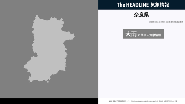6月11日15時39分、奈良地方気象台は、警報・注意報に先立ち注意・警戒を呼びかけるため奈良県に発表していた気象情報を更新した。