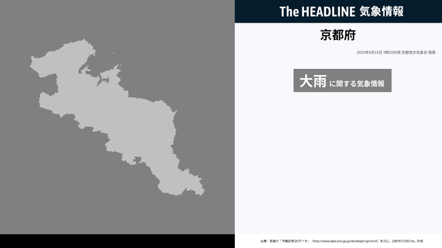 6月15日5時25分、京都地方気象台は、警報・注意報に先立ち注意・警戒を呼びかけるため京都府に発表していた気象情報を更新した。