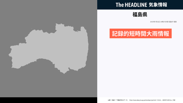 7月2日16時27分、気象庁は福島県の記録的短時間大雨情報を更新した。