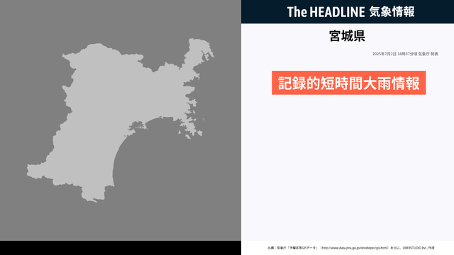 7月2日16時37分、気象庁は宮城県の記録的短時間大雨情報を発表した。