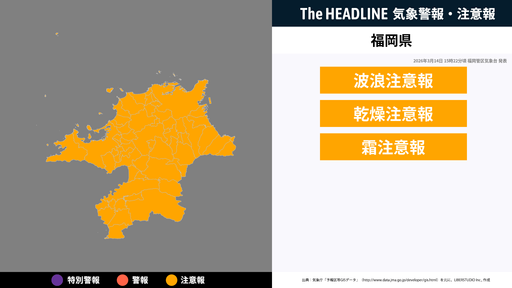 福岡県、大雨と落雷及び突風に関する気象情報が更新