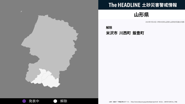 7月10日17時30分、山形県の土砂災害警戒情報が解除された