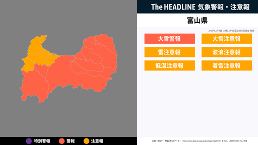 富山県、雷と突風及び降ひょうに関する気象情報が発表