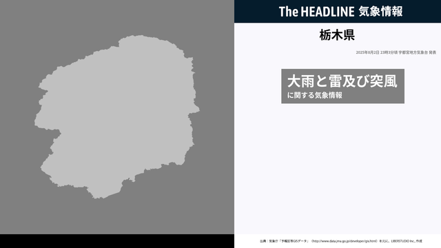 8月2日23時3分、宇都宮地方気象台は、栃木県に発表されている警報・注意報の経過、予測、防災上の留意点などを解説するために発表していた気象情報を更新した。