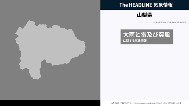 8月3日23時37分、甲府地方気象台は、警報・注意報に先立ち注意・警戒を呼びかけるため山梨県に発表していた気象情報を更新した。