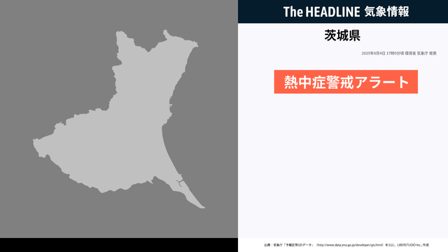 環境省と気象庁は、明日8月5日を対象とした熱中症警報アラートを茨城県に対して発表しました。外出はなるべく避け、室内をエアコン等で涼しい環境にして過ごしてください。