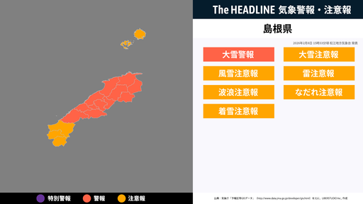 8月8日5時27分、松江地方気象台は、島根県に発表されている警報・注意報の経過、予測、防災上の留意点などを解説するために発表していた気象情報を更新した。