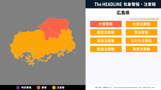 8月8日5時26分、広島地方気象台は、広島県に発表されている警報・注意報の経過、予測、防災上の留意点などを解説するために発表していた気象情報を更新した。