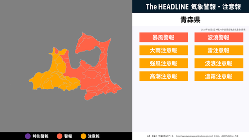 8月7日15時55分、土砂災害の危険性の高まりから青森県 青森地方気象台より青森県に発表されていた、土砂災害警戒情報が解除された。