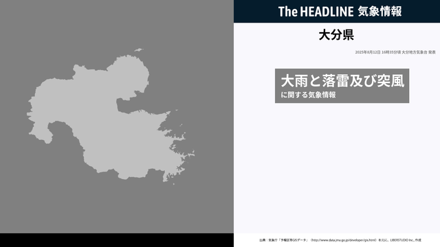 8月12日16時35分、大分地方気象台は、大分県に発表されている警報・注意報の経過、予測、防災上の留意点などを解説するために発表していた気象情報を更新した。