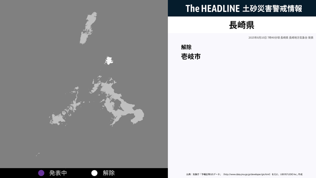 8月10日7時40分、長崎県の土砂災害警戒情報が解除された