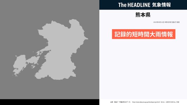 8月11日9時9分、気象庁は熊本県の記録的短時間大雨情報を更新した。