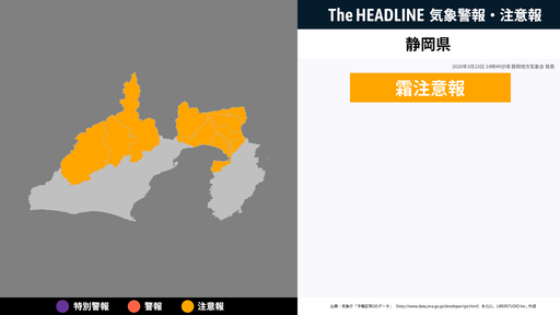 8月17日6時30分、土砂災害の危険性の高まりから静岡県 静岡地方気象台より静岡県に発表されていた、土砂災害警戒情報が解除された。