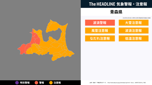 8月21日6時10分、青森地方気象台は、青森県に発表されている警報・注意報の経過、予測、防災上の留意点などを解説するために発表していた気象情報を更新した。