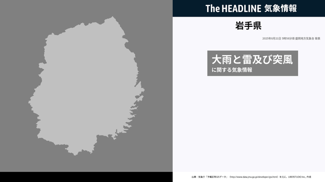 8月21日5時58分、盛岡地方気象台は、岩手県に発表されている警報・注意報の経過、予測、防災上の留意点などを解説するために発表していた気象情報を更新した。