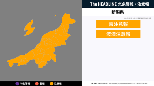 8月21日5時30分、新潟地方気象台は、新潟県に発表されている警報・注意報の経過、予測、防災上の留意点などを解説するために発表していた気象情報を更新した。
