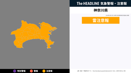 神奈川県、雷と突風及び降ひょうに関する気象情報が発表