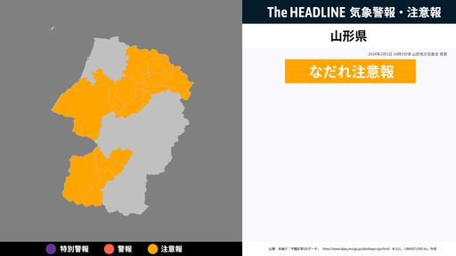 9月3日11時7分、山形地方気象台は、山形県に発表されている警報・注意報の経過、予測、防災上の留意点などを解説するために発表していた気象情報を更新した。