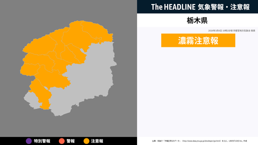 9月3日22時18分、宇都宮地方気象台は、栃木県に発表されている警報・注意報の経過、予測、防災上の留意点などを解説するために発表していた気象情報を更新した。