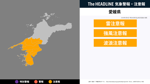 9月5日5時49分、松山地方気象台は、愛媛県に発表されている警報・注意報の経過、予測、防災上の留意点などを解説するために発表していた気象情報を更新した。