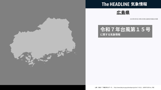9月5日6時19分、広島地方気象台は、広島県に発表されている警報・注意報の経過、予測、防災上の留意点などを解説するために発表していた気象情報を更新した。