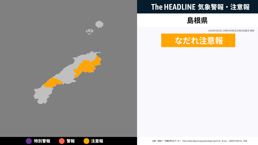 9月8日6時30分、土砂災害の危険性の高まりから島根県 松江地方気象台より島根県に発表されていた、土砂災害警戒情報が解除された。