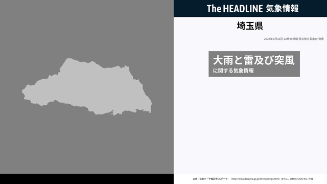9月18日22時46分、熊谷地方気象台は、埼玉県に発表されている警報・注意報の経過、予測、防災上の留意点などを解説するために発表していた気象情報を更新した。