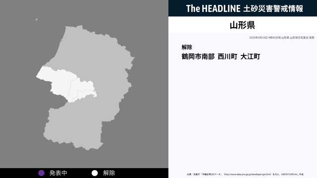 9月18日9時42分、山形県の土砂災害警戒情報が解除された