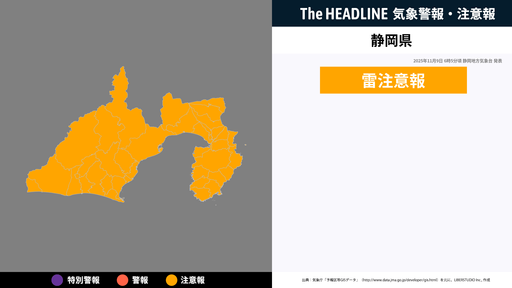 9月20日16時9分、静岡地方気象台は、静岡県に発表されている警報・注意報の経過、予測、防災上の留意点などを解説するために発表していた気象情報を更新した。