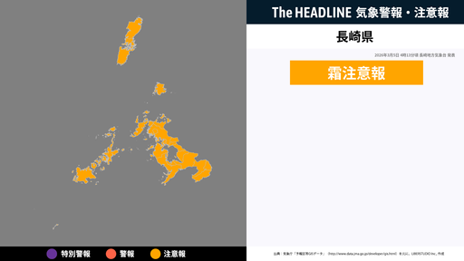 9月23日16時5分、長崎地方気象台は、長崎県に発表されている警報・注意報の経過、予測、防災上の留意点などを解説するために発表していた気象情報を更新した。