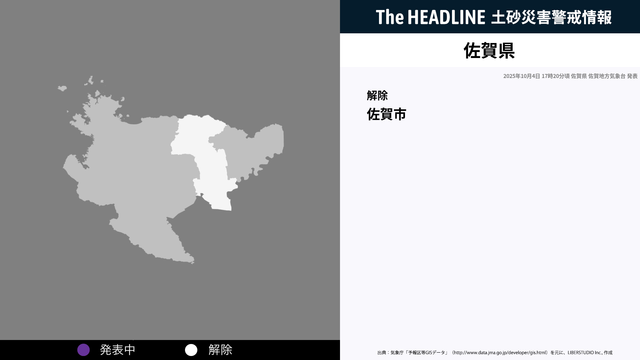 10月4日17時20分、佐賀県の土砂災害警戒情報が解除された