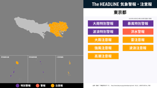 10月9日7時9分、気象庁は東京都の記録的短時間大雨情報を更新した。