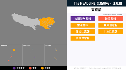伊豆諸島南部、線状降水帯による非常に激しい雨が続き災害発生の危険度が急激に高まる