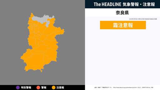 10月16日16時3分、奈良地方気象台は、奈良県に発表されている警報・注意報の経過、予測、防災上の留意点などを解説するために発表していた気象情報を更新した。